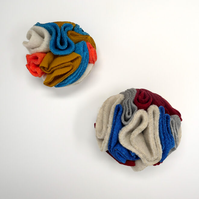 ②スナッフルボールやノーズワークマットに臭いの強いおやつを隠します。