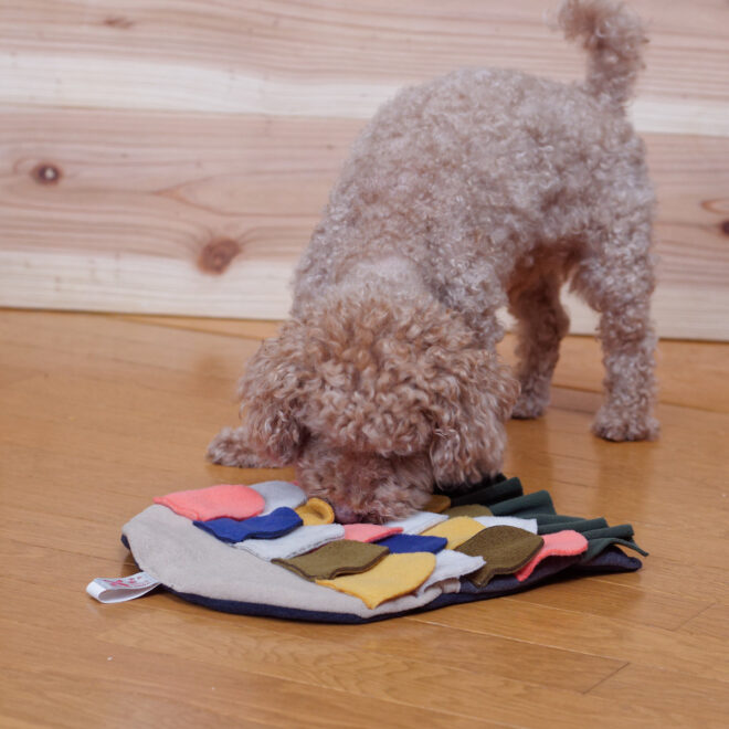 ノーズワークマットやスナッフルボールなどを使えばご家庭で簡単に飼主さんと楽しめます。