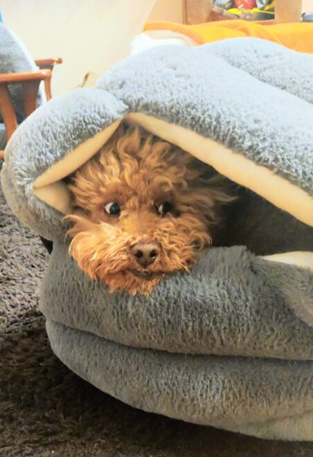 臭いをかぐ本能を生かして「宝探し=良い匂いのおやつ🦴探し」をして遊びます。