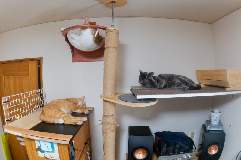 下の写真でアンズ様がいる椅子が👨🏻の椅子。向こう側のルイ(トイプー)が寝ている椅子は😺様用に置いたのですが、最近は🐕のアキとルイが争奪戦で困ったものです。