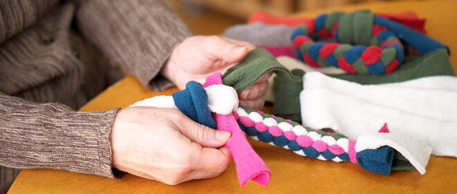 おやつを隠して探させるノーズワーク モンベル端布の知育玩具スナッフルボール