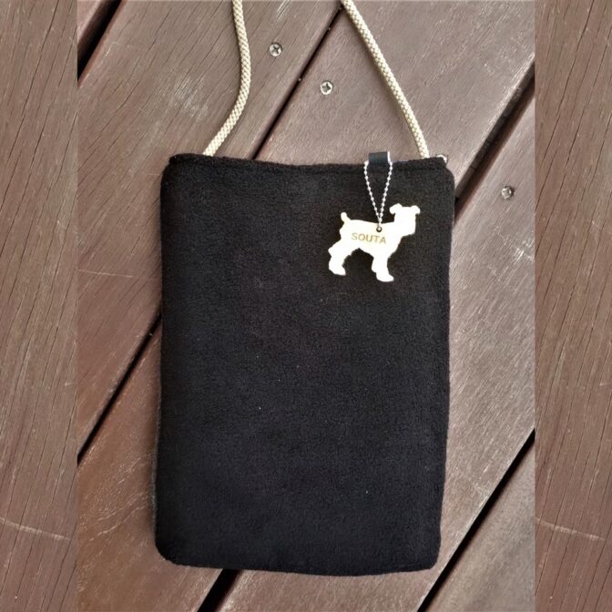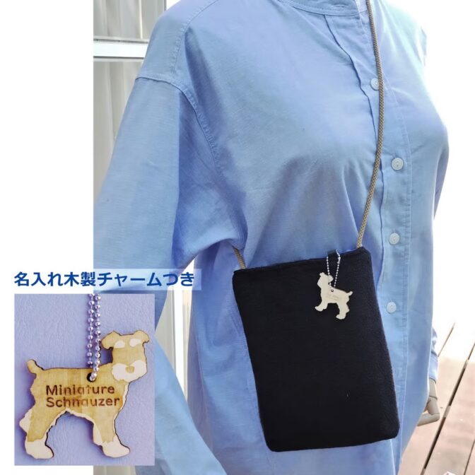 モンベルフリース端材のショルダー・ブラック(名入れ木製チャームつき)