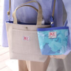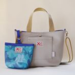 表面はアウトドアメーカー・モンベルのレインウェアの生地端布を使い新たにデザインしました。残り数点しかない限定品です。
