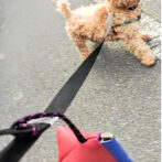 ストラップをリードやバッグにつけられます。PVCレザーの防水素材で雨でもOK
